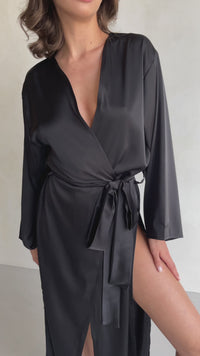 Long Silk Robe with Side Cuts