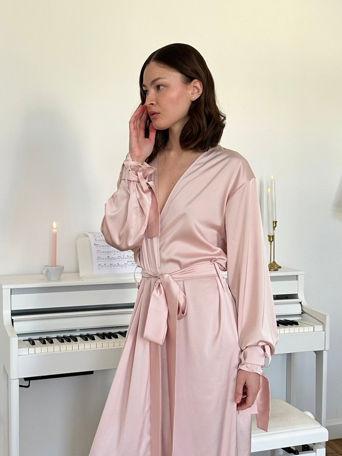 The "Parisian Chic" collection is a stunning fusion of sophistication and allure. Crafted from a blend of sumptuous, eco-friendly viscose and sensually soft silky fabric, this collection offers a range of exquisite designs. From floor-length nightgown dresses that exude timeless elegance to alluring boudoir robes that evoke a sense of seductive charm, every piece is meticulously crafted to elevate your style. Whether you're savoring a quiet evening at home or stepping out for a night on the town, the "Parisian Chic" collection ensures that every woman feels effortlessly glamorous. Embrace the enchanting world of Parisian sophistication and make a statement with this exquisite collection.