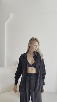 Silky 3-pieces pajama set - Pants, Bra-top, Shirt